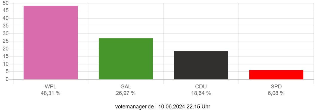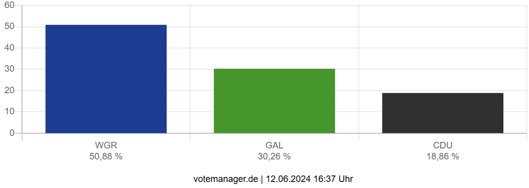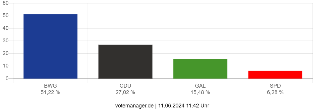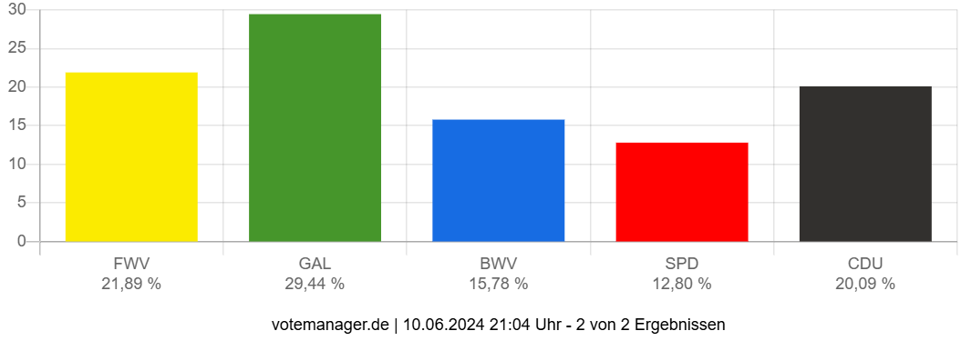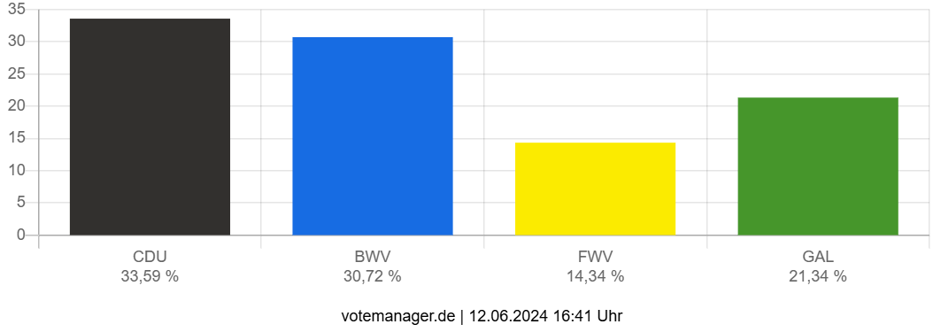 Für die SPD, FWV und BWV hat sich Sitztechnisch nix geändert, die GAL hat einen Sitz an die CDU abgegeben